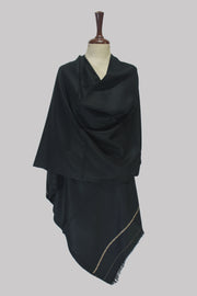 Handwoven from the finest Kashmiri wool, its texture is exceptionally soft, offering both warmth and breathability. The minimal design is subtly elevated by a delicate golden border line, adding just the right amount of shimmer without overpowering the shawl’s regal simplicity.