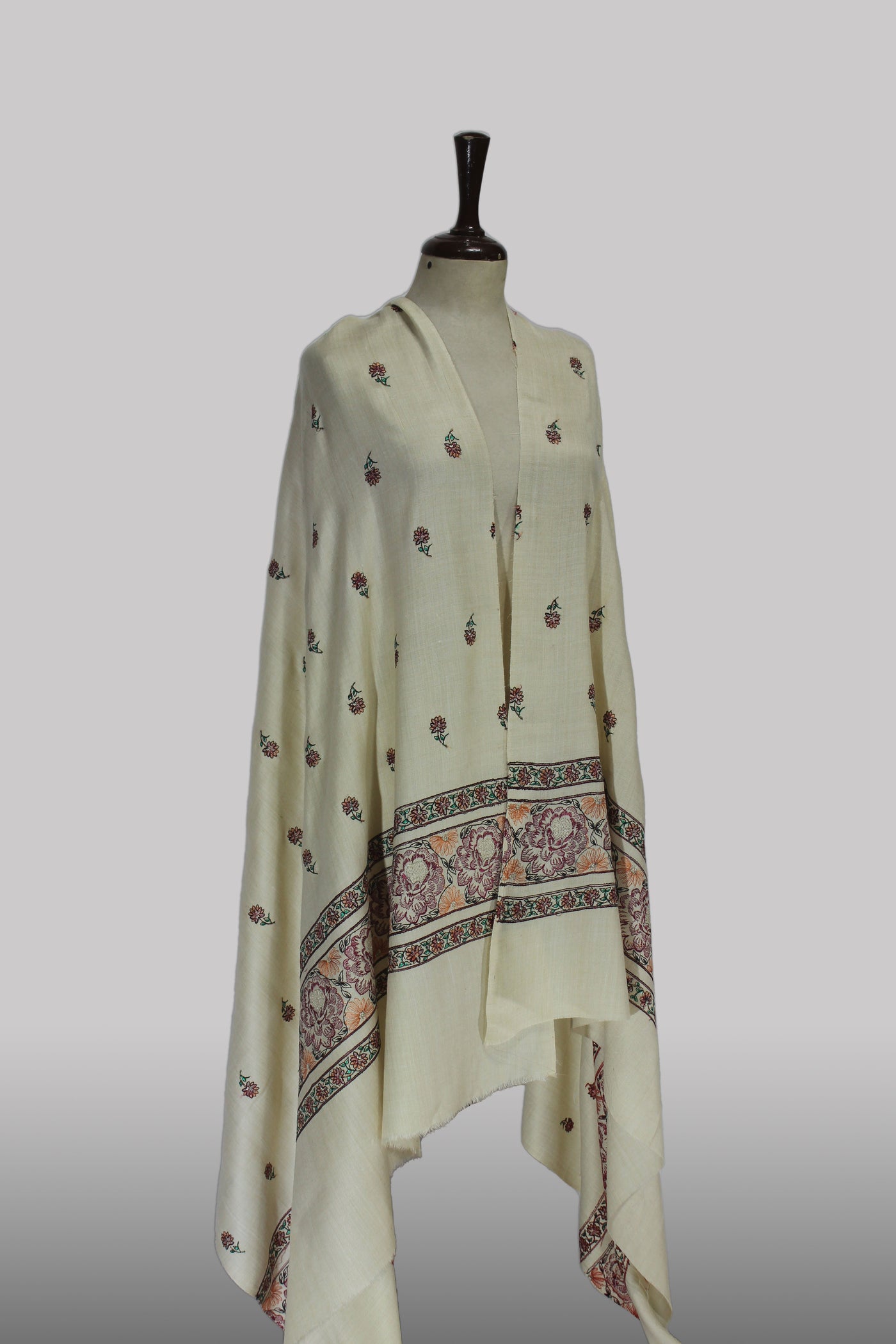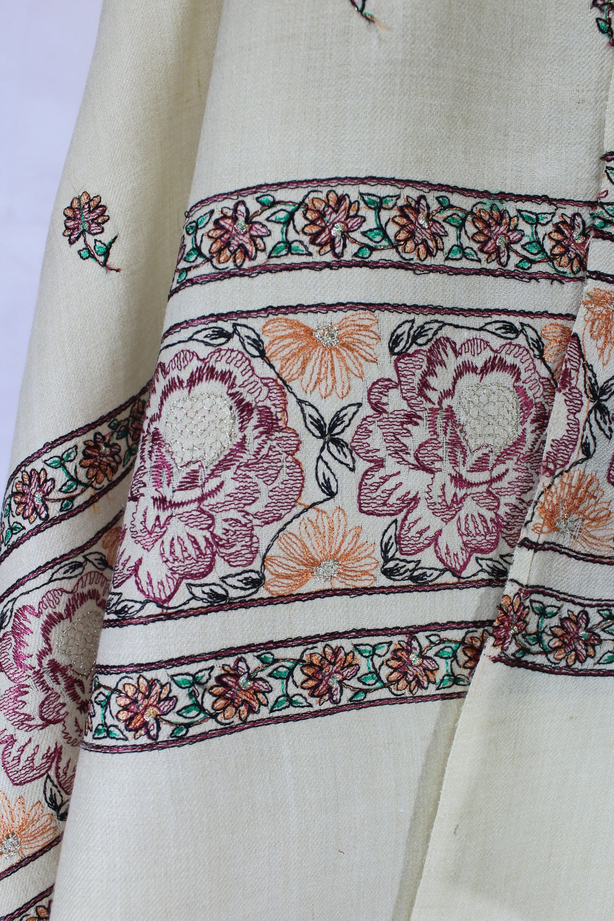 • Shawls can be lightly steamed to remove wrinkles. Avoid direct contact between the iron and the fabric, especially on heavily embroidered areas.